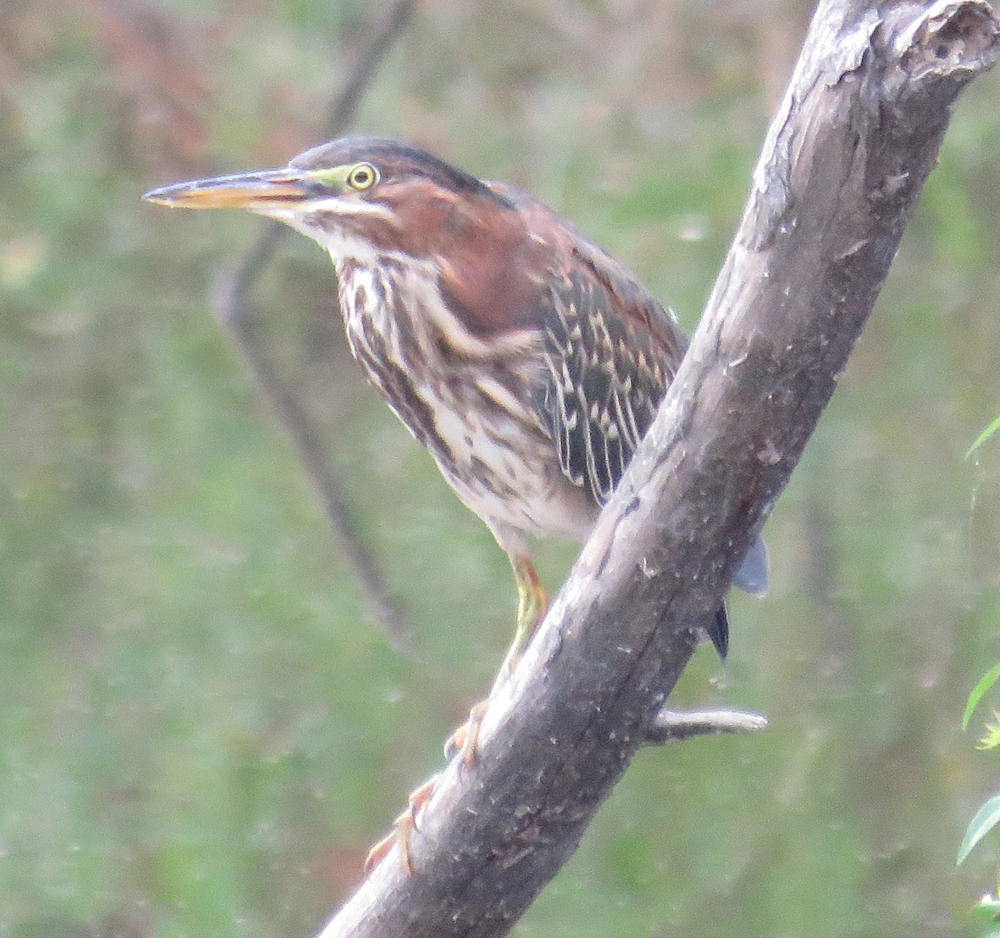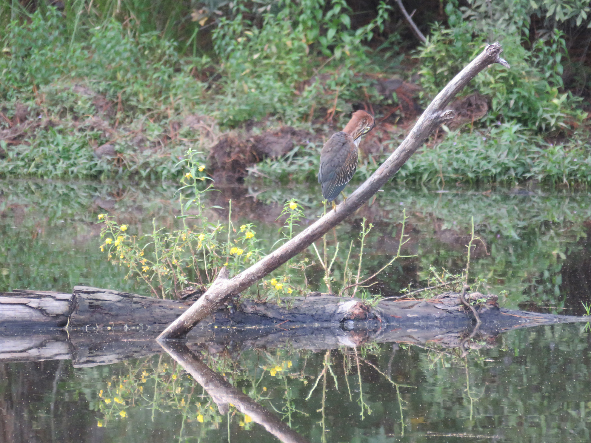 A Green Heron landed on the same fallen tree all the other water birds like.