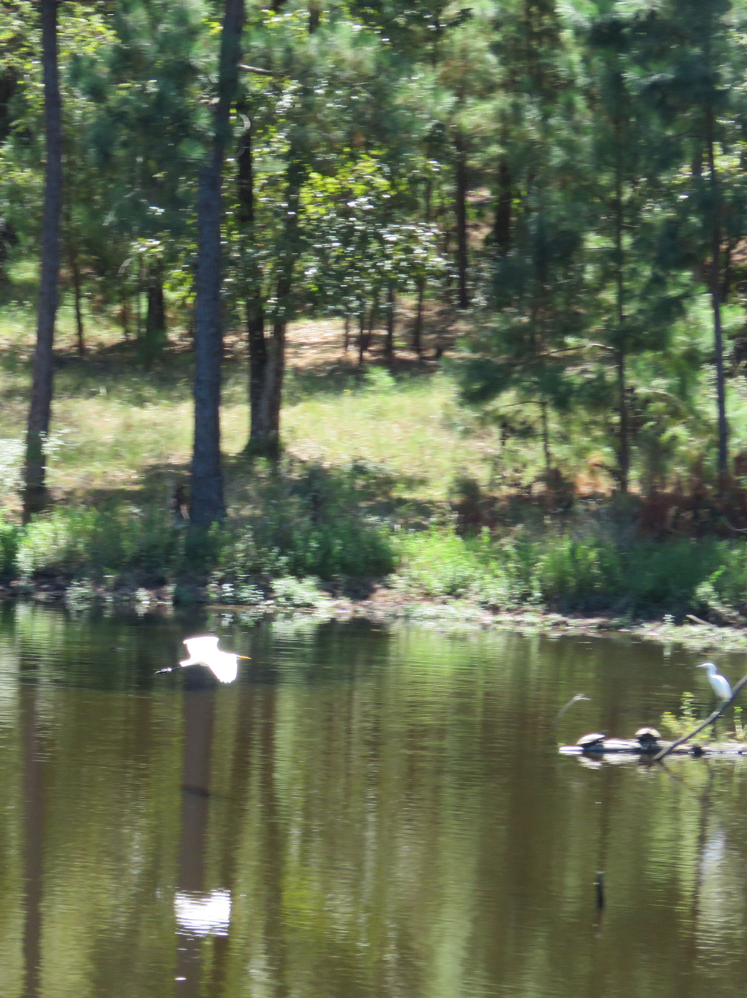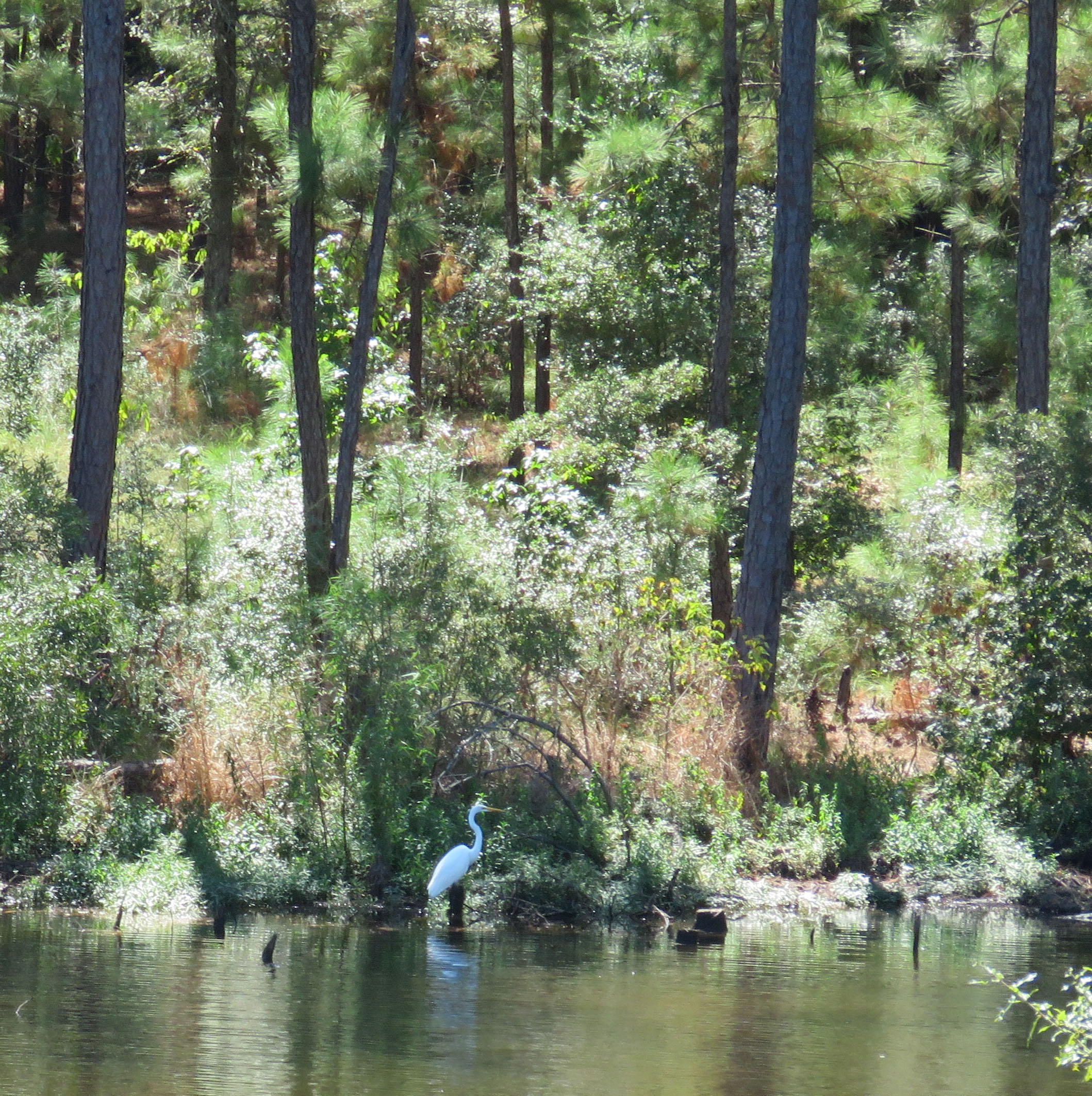 The tip from Jen Hooks’ photo prompt that helped me the most was the one about making sure you have a focal point in monochromatic pictures. The egret provided a perfect focal point in the sea of Pineywoods green.