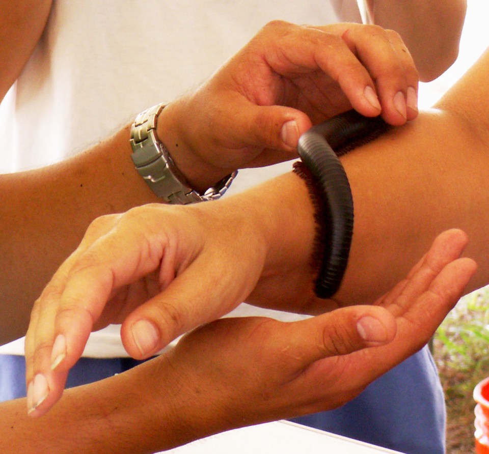 A big millipede. Its legs felt like tiny plastic bristles on a scrub brush. It tickled.