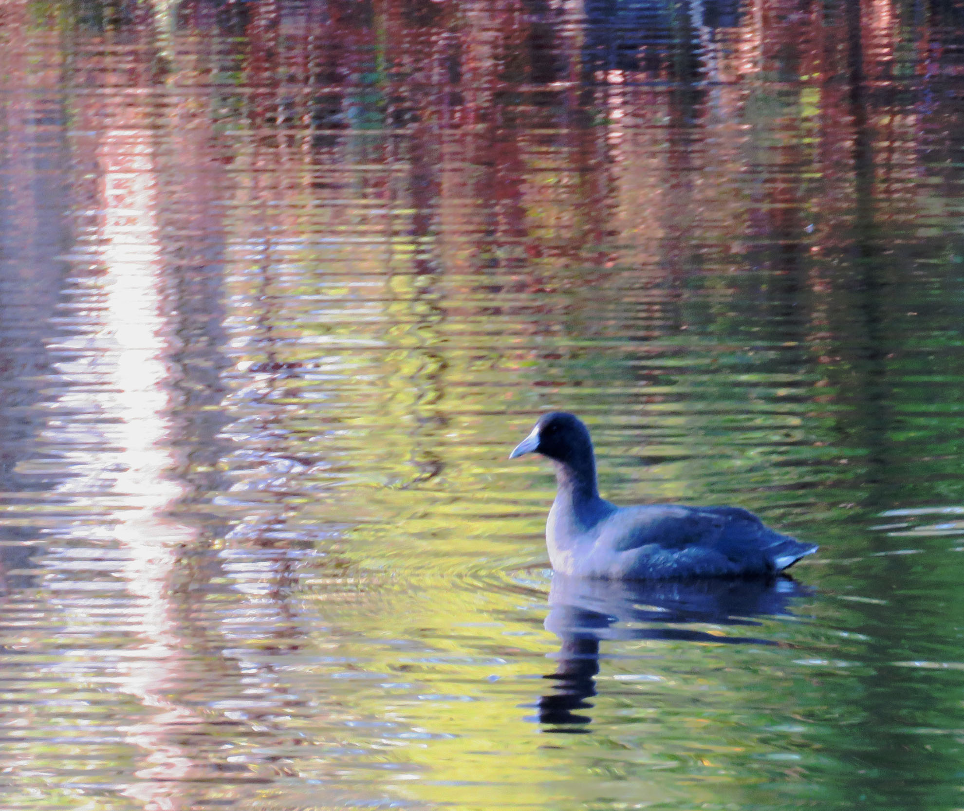 I did use the Auto Smart Tone feature of Photoshop Elements on this picture which increased the saturation a little. I lost a little detail in the bird’s face, but I really loved how it looks so dark blue against the myriad of colors in the water.