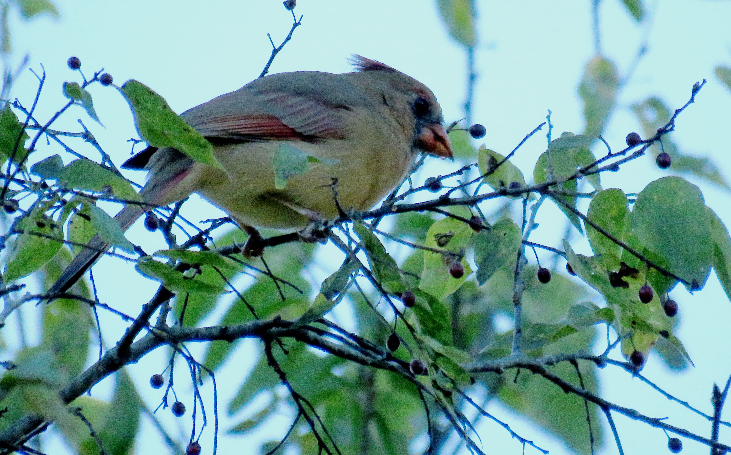 Their host plants are hackberry species.  The one we have is called Sugar Hackberry or Sugarberry, and right now it has tiny red berries that have just a thin sweet skin over a crunchy seed.