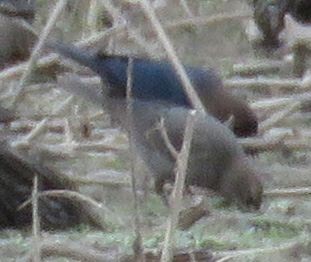 Brown-headed Cowbird pair. The female is nondescript, but her smooth solid coloring is easy to differentiate from the streaked blackbird females. If there were more present, I think I would be able to find them.