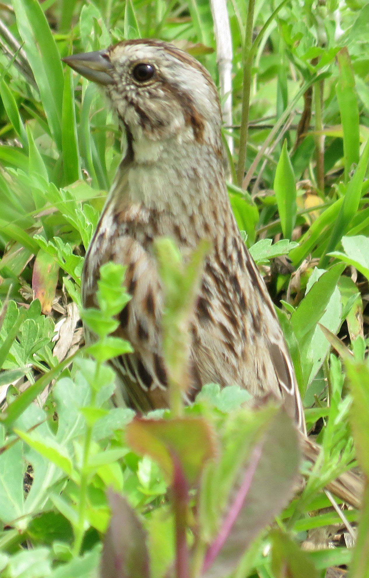 One of them was walking through the grass near us, and I was getting some pictures of it, when some piece of large equipment started running at the construction site nearby. The sparrow stretched up and looked in that direction. Its curiosity made for some cute pictures.