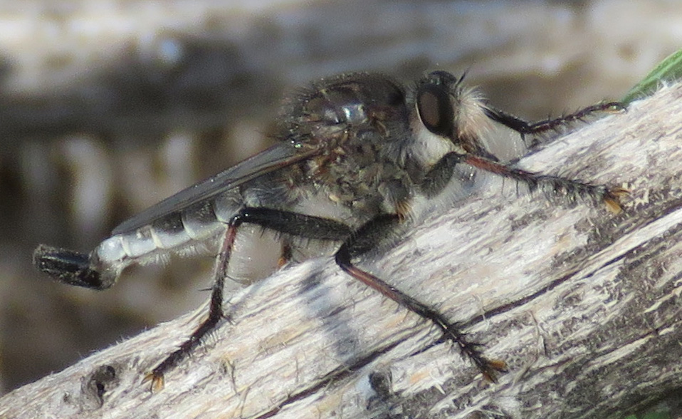 Robber Fly male, Efferia sp. This insect is about 2 inches (5 cm) long, about the size of a small dragonfly!