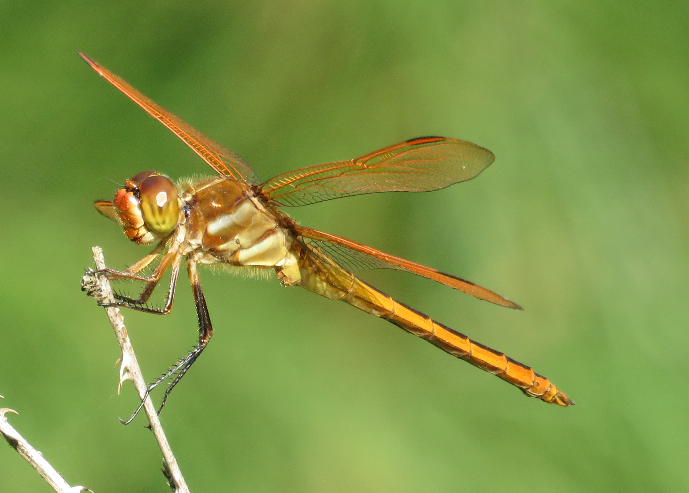 There is a very similar species to this, named Needham’s Skimmer, but that one has brown back legs and the leading edge of the wing (which is called the costal vein) has a color break in the middle.  This one had black back legs and the costal vein was one shade of brilliant orange throughout, which led me to identify it as the Golden-winged Skimmer.  There are a few other differences, but those are the two that showed up best in the pictures, so that is as much detail as I am going to go into.  If you ever need to figure this out for yourself, there are some very helpful graphics here.