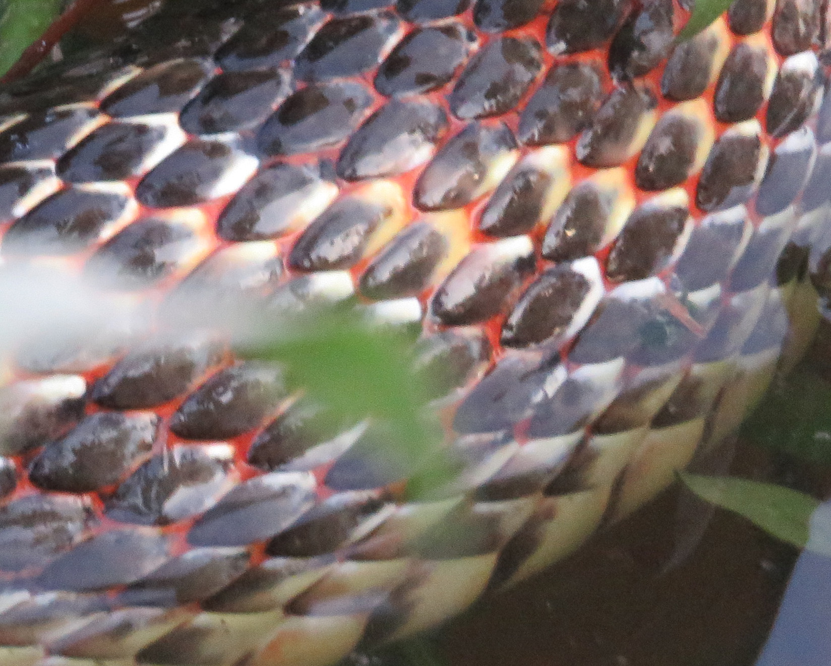 The pale banding between the large dark blotches wasn’t apparent until the snake stretched out to swim.