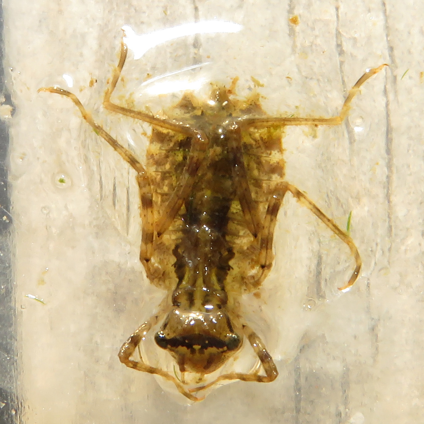 One thing I have learned from my dragonfly field guide, is that the different species of dragonfly look different even in the nymph stage! (I don’t know why this surprises me, I wouldn’t expect all caterpillars to look the same.) But I can feel sure it is a dragonfly, because even in their underwater life stages, the various kinds of larvae and nymphs have recognizable general shapes and features. For example, dragonfly nymphs are robust, and don’t have tails; damselfly nymphs have three leaf-like tails that are really their gills! Here is a page that simplifies their features.
