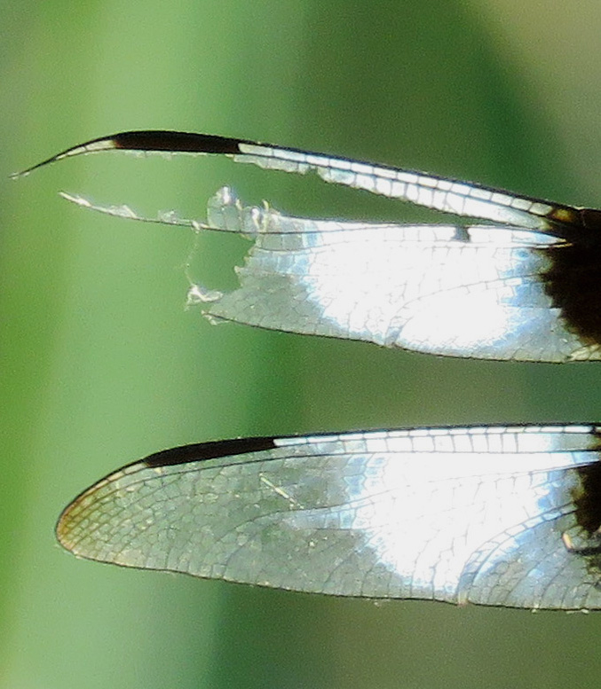 I wondered how fast dragonflies beat their wings. This site says around 30/sec. I guess it is no wonder they get a little ragged. http://www.dragonfly-site.com/dragonfly-facts.html