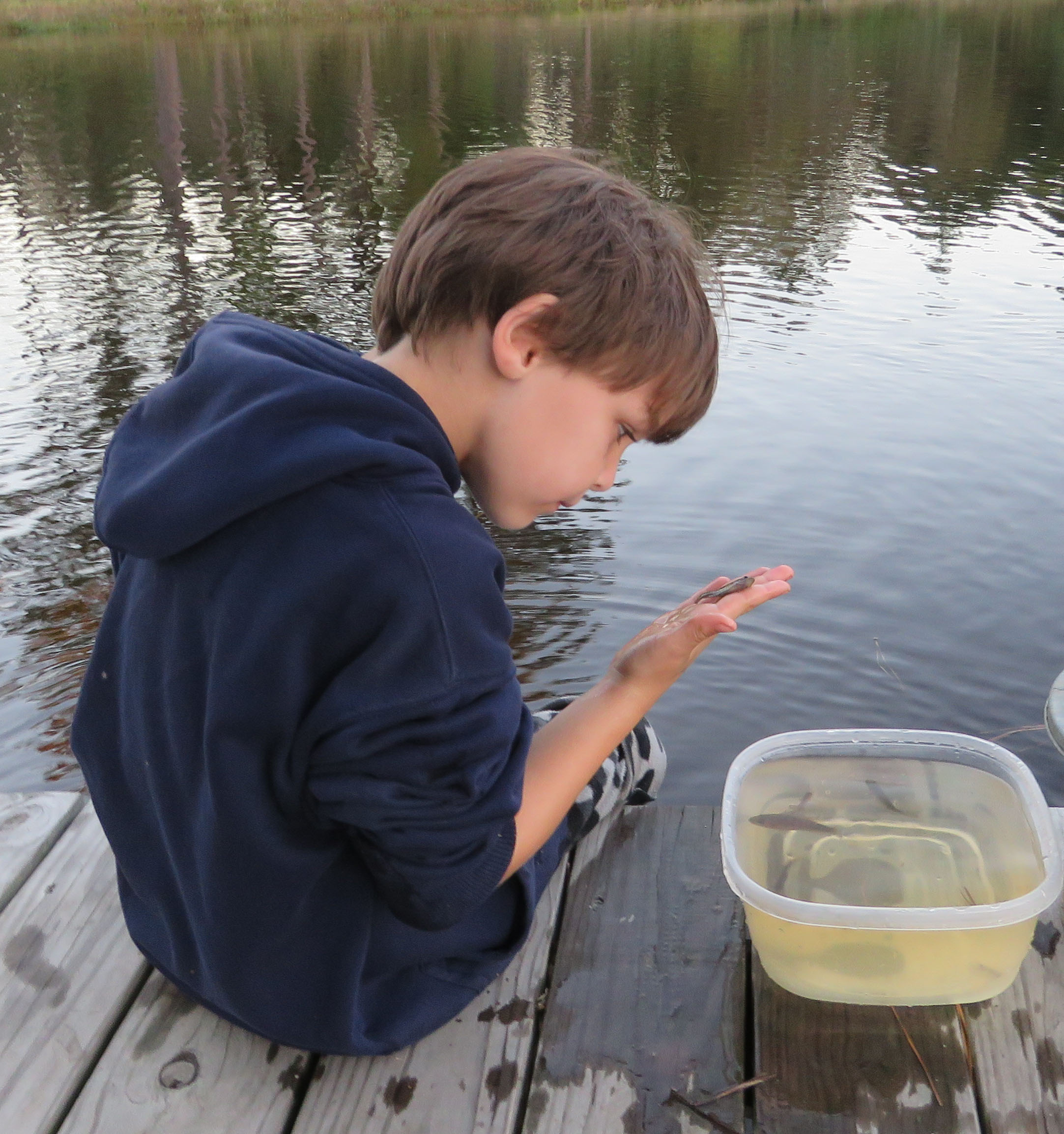 The minnow has weird big eyes and its mouth is opening. It feels kinda slimy.