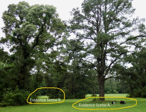 The next day I went back out to look for more evidence.  I started with “Tree 1,” and I even found a clenched claw!  (I photographed it but I will spare you).