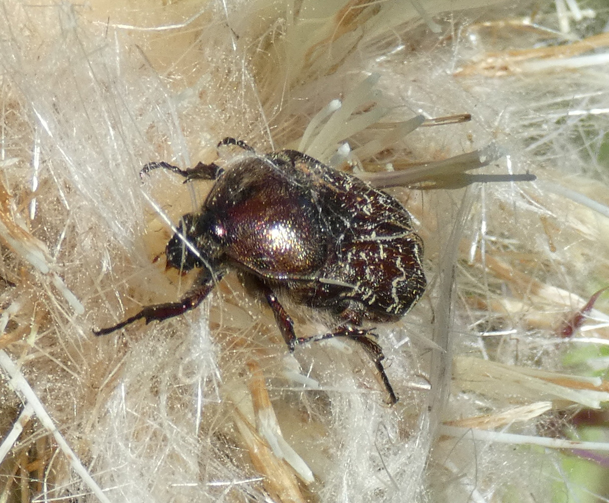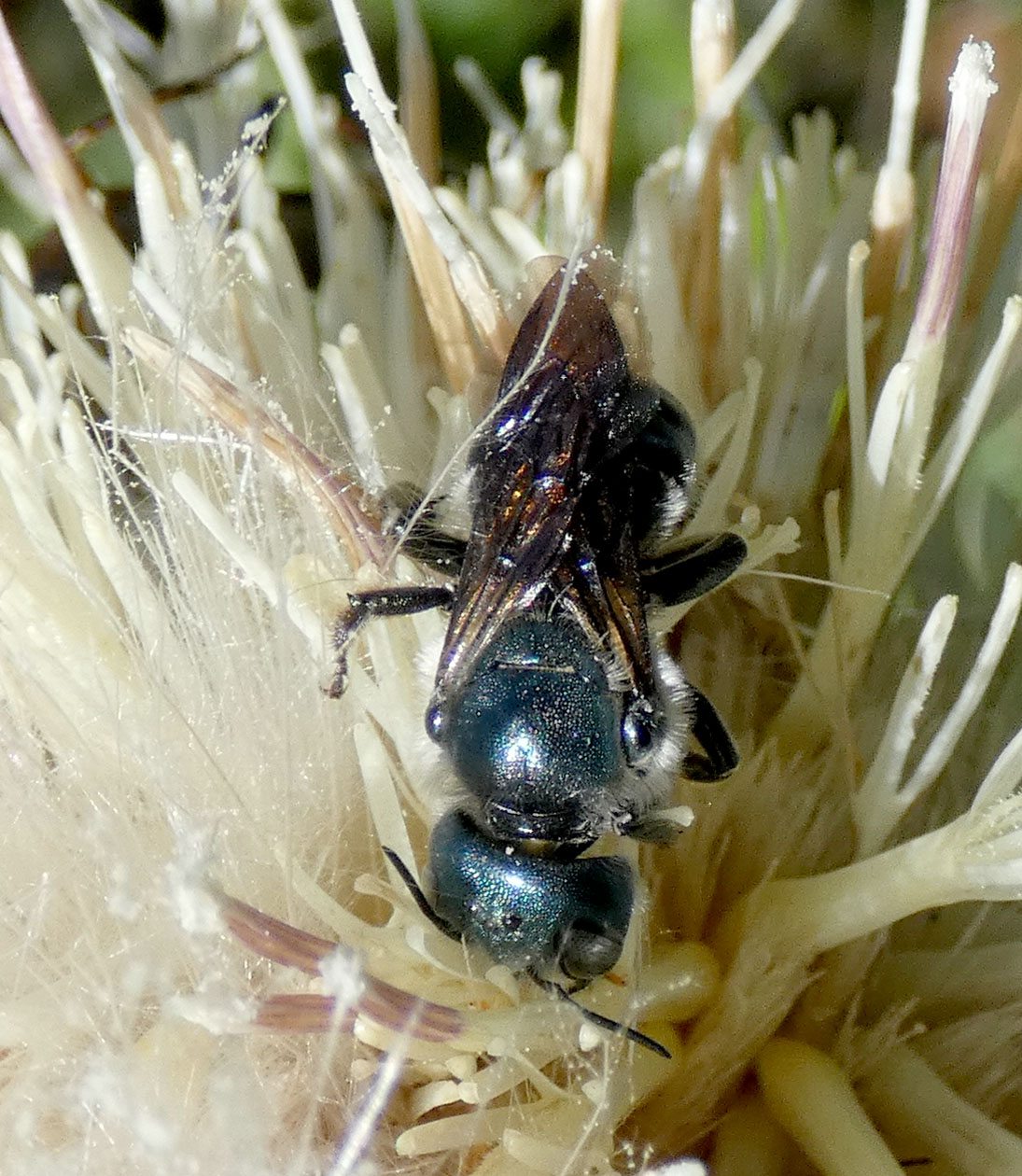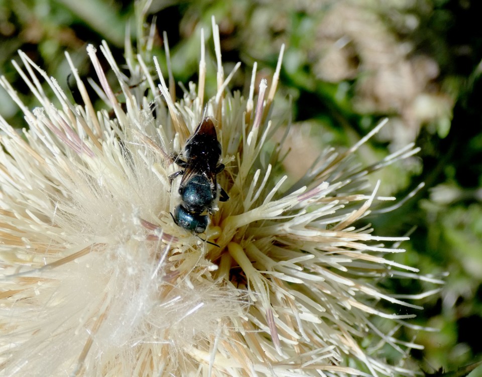 On my regular route, I go first through a pasture, where right now, giant thistles are going to seed. They are full of interesting insects. (You can click to see these images in a larger version.)