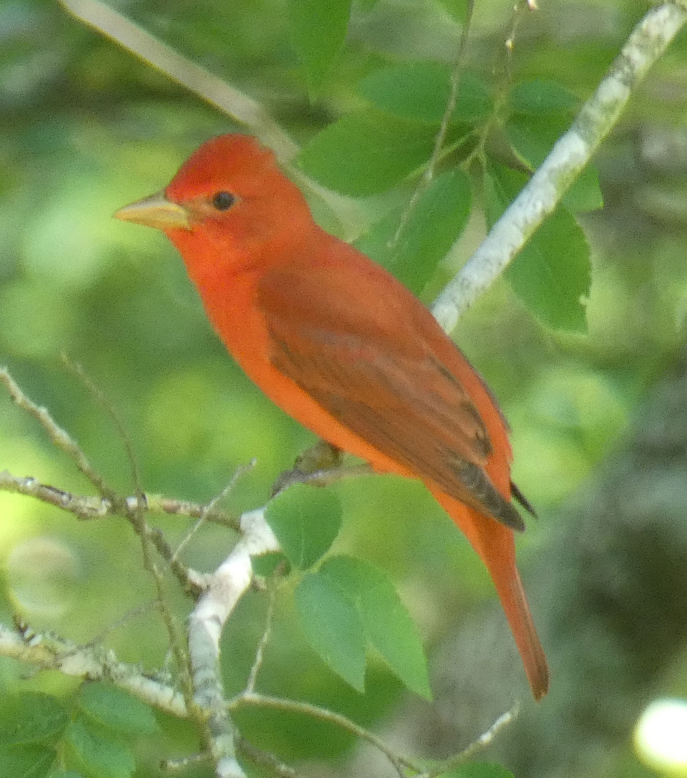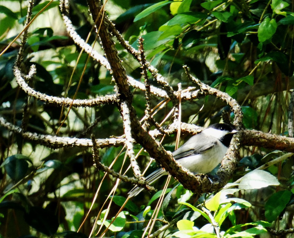 Six Carolina Chickadees and a Summer Tanager perched in trees on the edges of the woods, to see what I was up to.