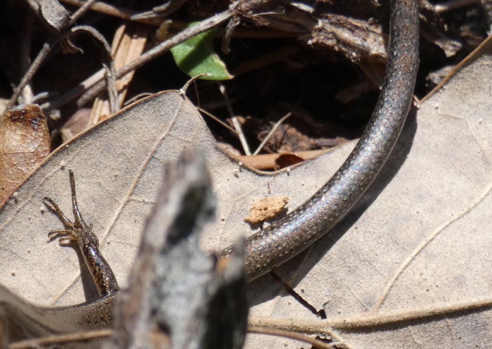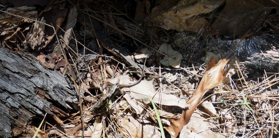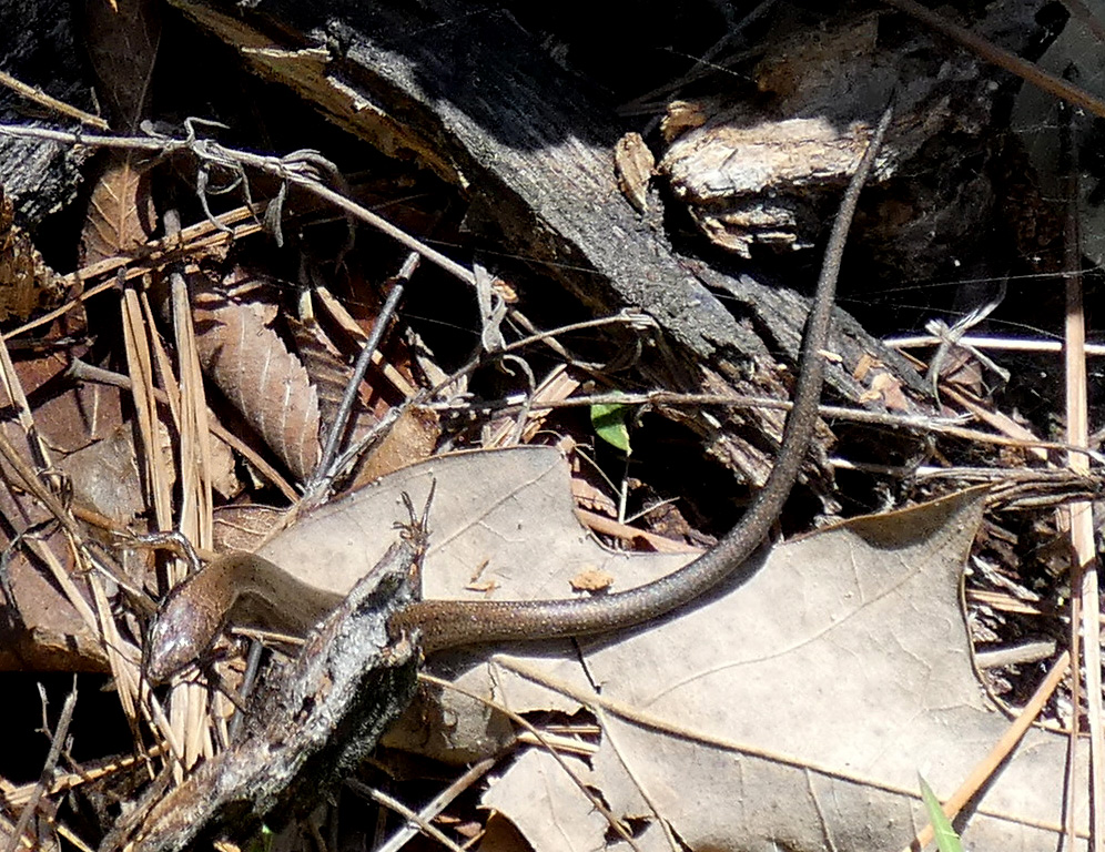 I was aiming to get a picture of this tiny lizard, a Little Brown Skink, which was only about 3 inches long. Look at how great all the textures show up — the old wood, the dead leaves and pine needles, even the strands of spider web in the top right. (If you are only going to click on one photo to see the larger version, this is the one to choose.)