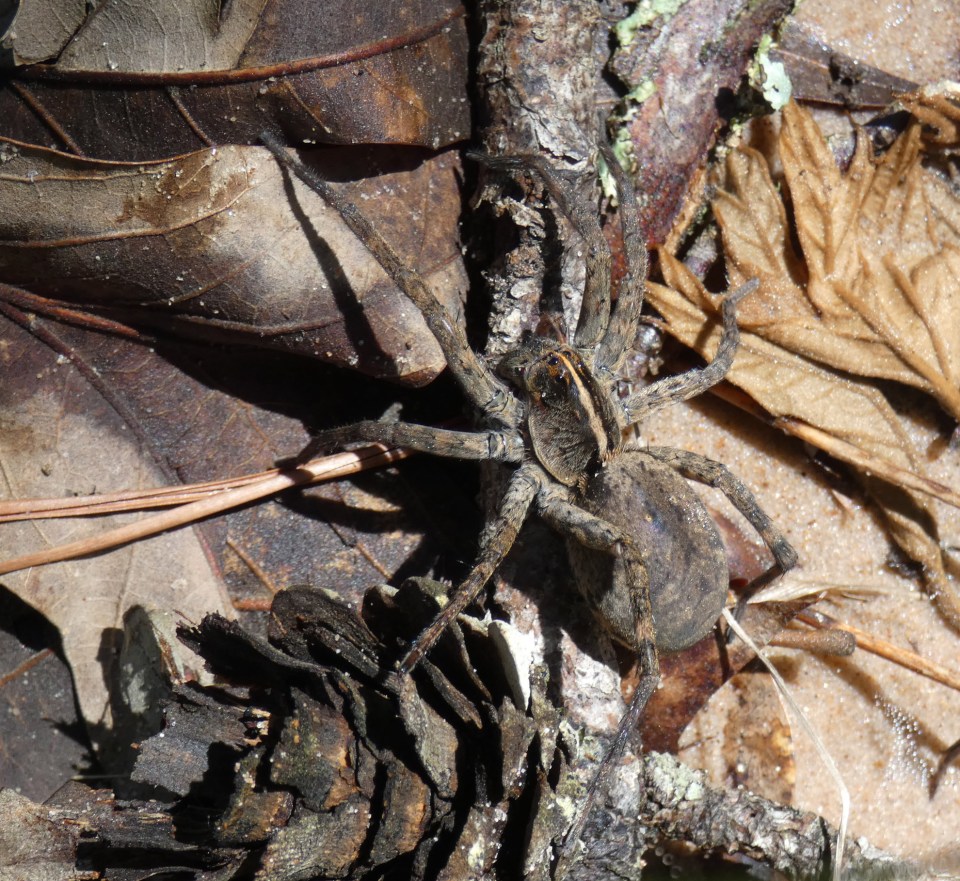 And then I got some pictures of this Wolf Spider — I take so many pictures of Wolf Spiders because they are big enough to focus on, but never before have I gotten a picture this sharp. You can see her eyes! And some little arm-band-looking things around the tops of her legs.