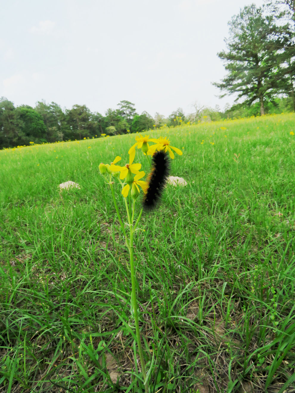 These dark caterpillars of the Salt Marsh Moth can be seen from far away.