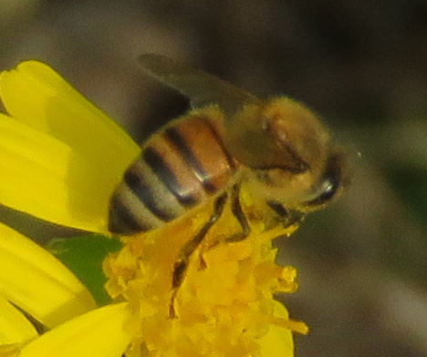 This year we have had a big bloom of Texas Ragwort, and on my walks I noticed many insects visiting them.