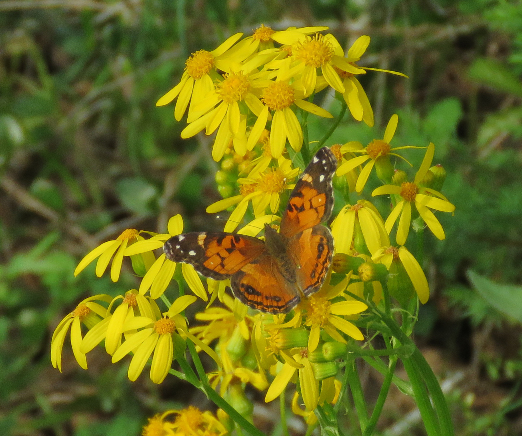 They are growing in an 11-acre pasture, and one thing I noticed, was that the area with the most insect activity seemed to change from day to day.  One day a ring of Ragwort growing around a dead oak tree would have all kinds of insects, but the rest of the field wouldn’t have any.  The next day it might change to a small area of open field, or to a ring around a Tupelo tree, or to the edge of the field near some pine saplings.  I would love to know why that is.