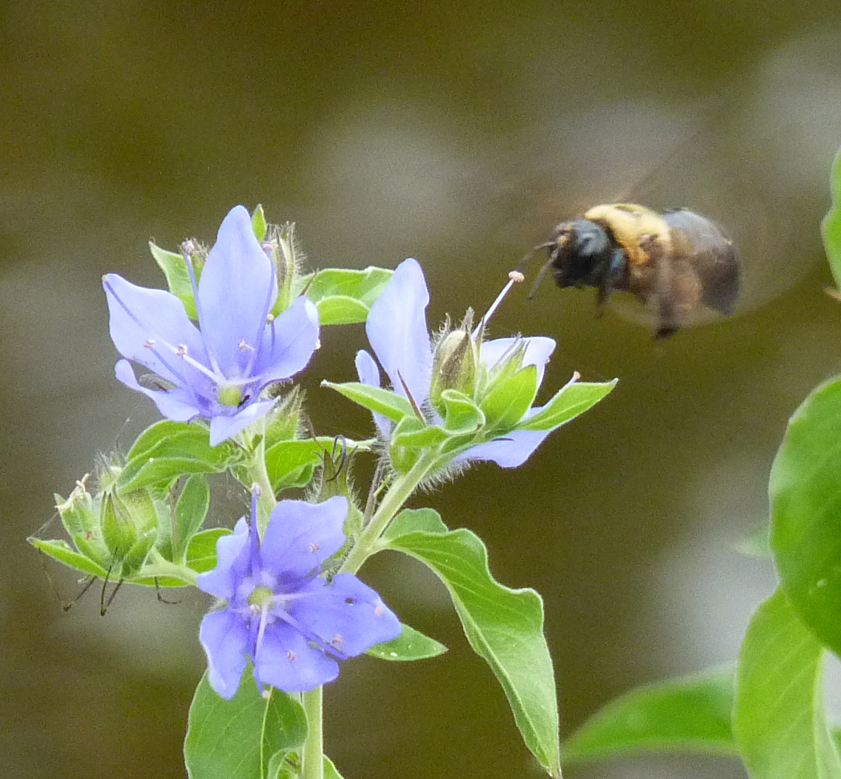 A Carpenter Bee approaches.