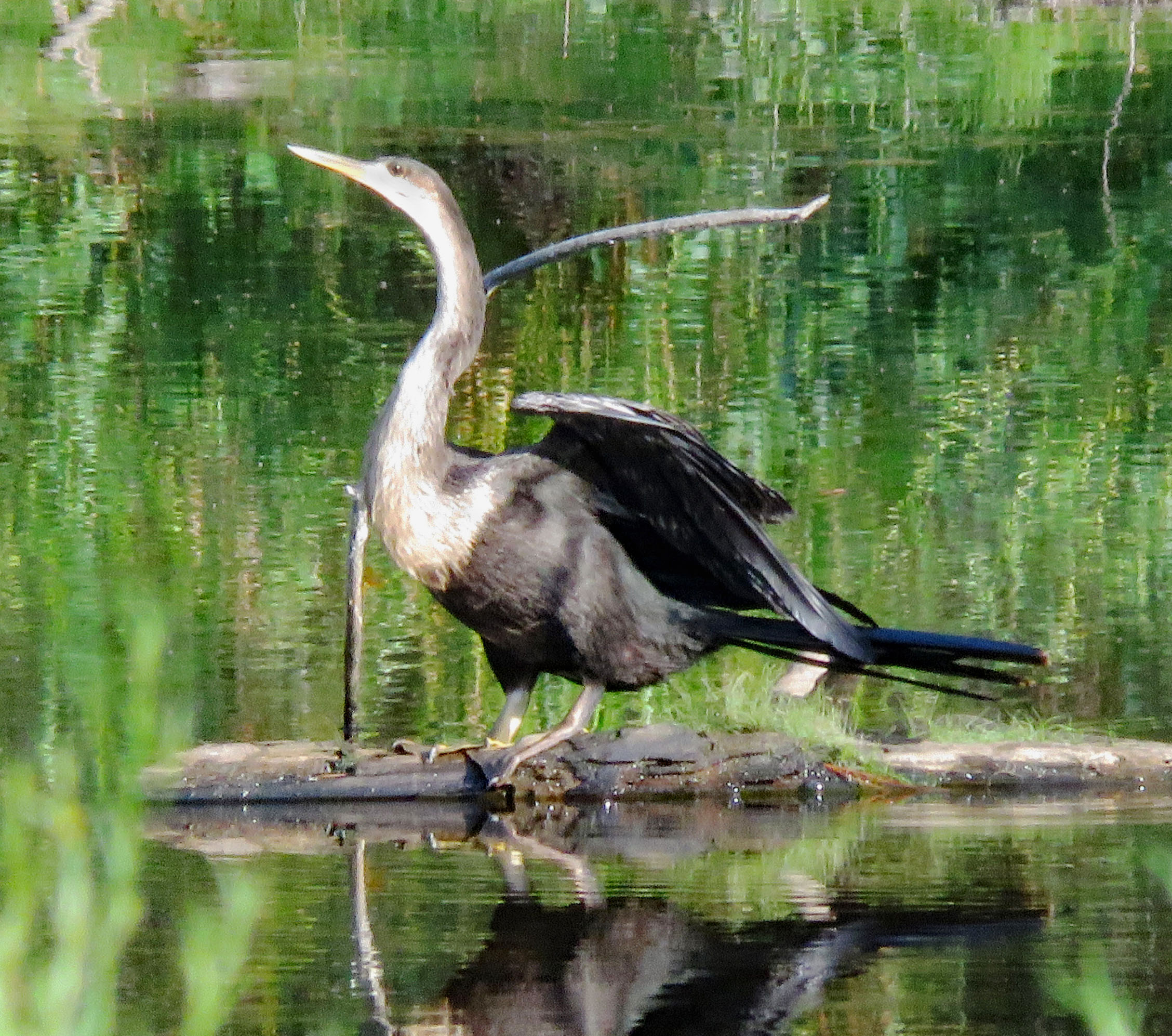 In the past, a lot of different birds have landed on that log in our pond. You can see more of them, including a male Anhinga, here.