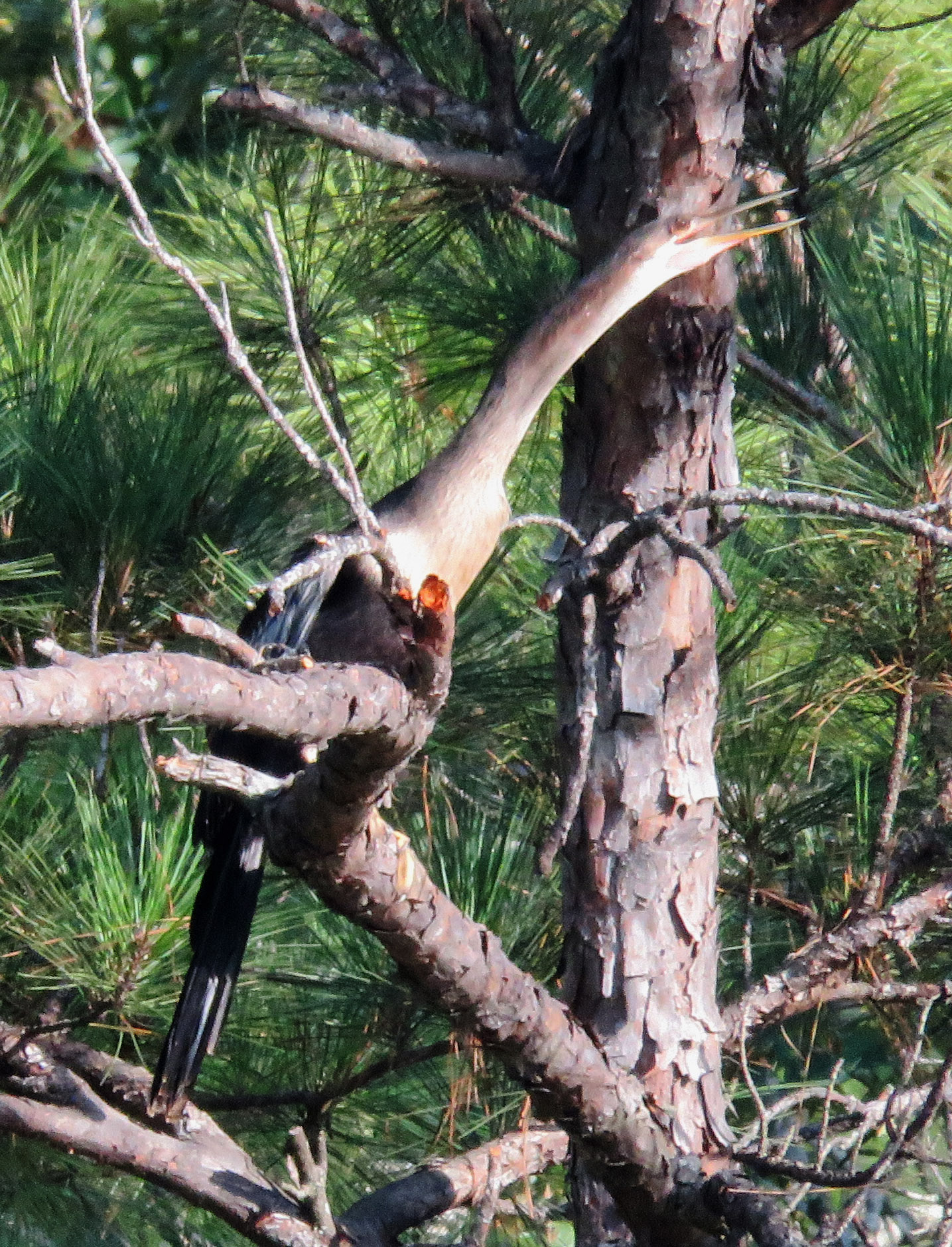I saw anhingas in the Florida Everglades 30 years ago – they looked really weird, especially fumbling around in tree tops. Same with the Oriental Darter and African Darter. Sometimes our (great) cormorants have the same problem – young birds that haven’t got the hang of it are really fun to watch!