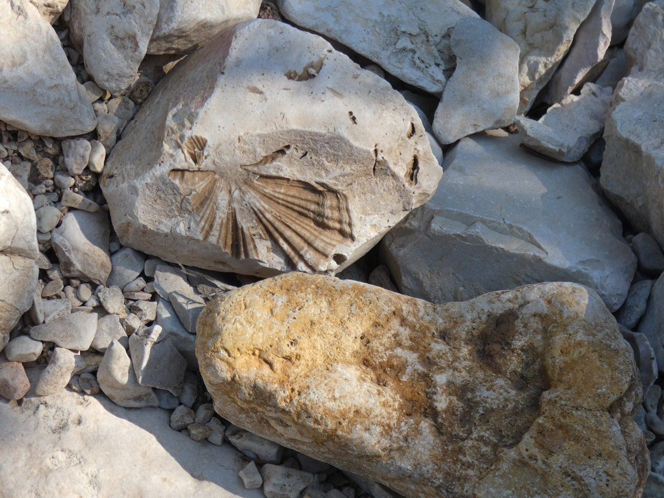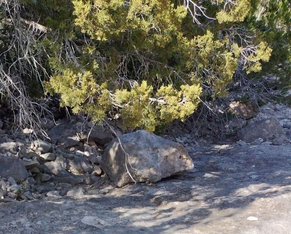 Watch your footing because the terrain is mostly loose rocks, with occasional patches of slick rock. And sometimes we will spot a fossil!